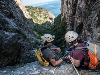 Percurso empolgante realizado em rapel, com uso de cordas e técnicas usadas em espeleologia. Esta é uma atividade conjugada pela aventura e conhecimento, através do vislumbre das formas cársicas moldadas pelas primeiras fases de erosão do planalto do Espichel, enquanto se desce em rapel até á paradisíaca praia da Baleeira.
